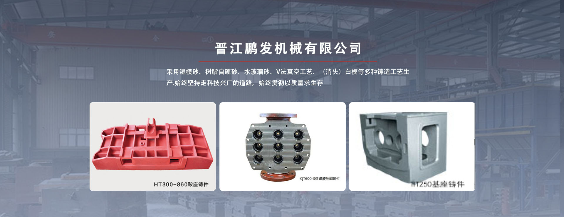 鵬發(fā)機(jī)械鑄造生產(chǎn)鞋機(jī)、大圓針織機(jī)、液壓機(jī)、數(shù)控機(jī)床、CNC加工中心配件。鵬發(fā)機(jī)械鑄造采用濕模砂、樹(shù)脂自硬砂、水玻璃砂、V法真空工藝、(消失)白模等多種鑄造工藝生產(chǎn)。鑄件材質(zhì)有:多種牌號(hào)灰口鑄鐵、多種牌號(hào)球墨鑄鐵、鑄鋼件,同時(shí)也生產(chǎn)低合金鋼、高錳鋼等材質(zhì)鑄件。員工120人,其中技術(shù)人員12人。具有雄厚的技術(shù)力量、先進(jìn)的檢測(cè)儀器及完善的管理體系。現(xiàn)有設(shè)備:2T中頻感應(yīng)電爐3套6爐,雙臂樹(shù)脂自硬混砂機(jī)3套,S114混砂機(jī)3套,V法真空鑄造生產(chǎn)線造型工作臺(tái)6站,拋丸、水力清理鑄件5套,退火設(shè)備1條,爐前鐵液質(zhì)量管理儀,高頻紅外碳硫分析儀,微機(jī)高速分析儀,熔煉測(cè)溫儀,布氏、洛氏硬度計(jì),金相、拉力試驗(yàn)機(jī),光譜儀等生產(chǎn)、檢測(cè)設(shè)備齊全。